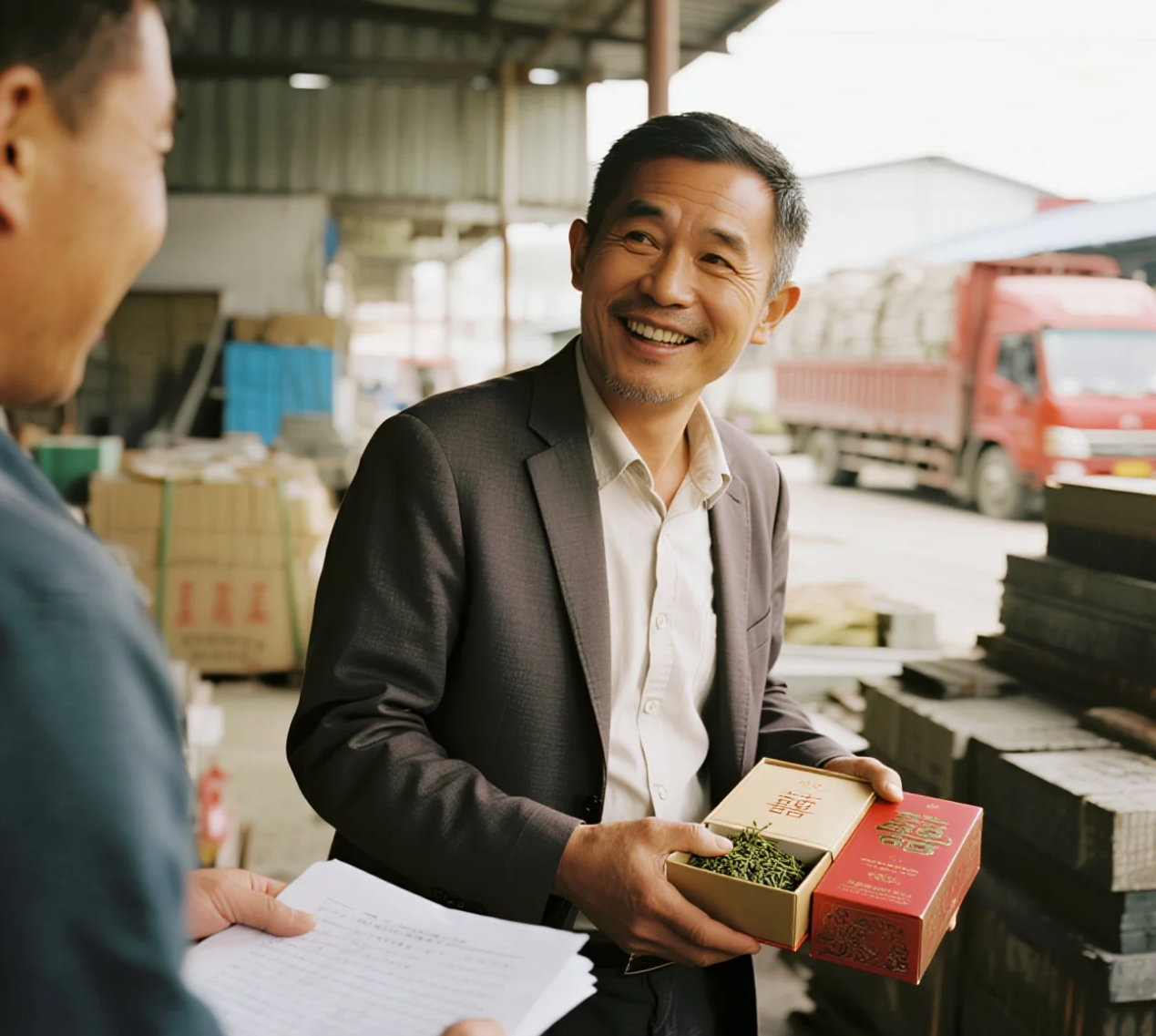陈志华递上一盒高档茶叶和请柬,"这是我特地买来的铁观音,您尝尝。还有这个请柬,我亲自给您送过来,就是想表达我的诚意。"