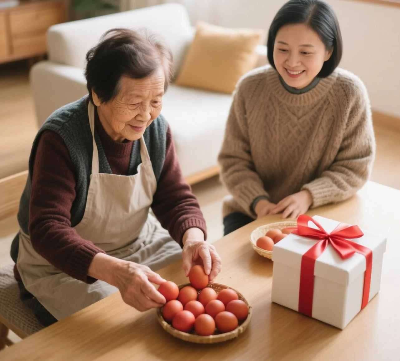 陈奶奶亲自下厨,煮了250个红鸡蛋,一个个仔细挑选,确保没有裂缝。"这红鸡蛋要圆圆满满的,寓意小宝一生圆满。不能有一点瑕疵,这是老传统,不能马虎。"